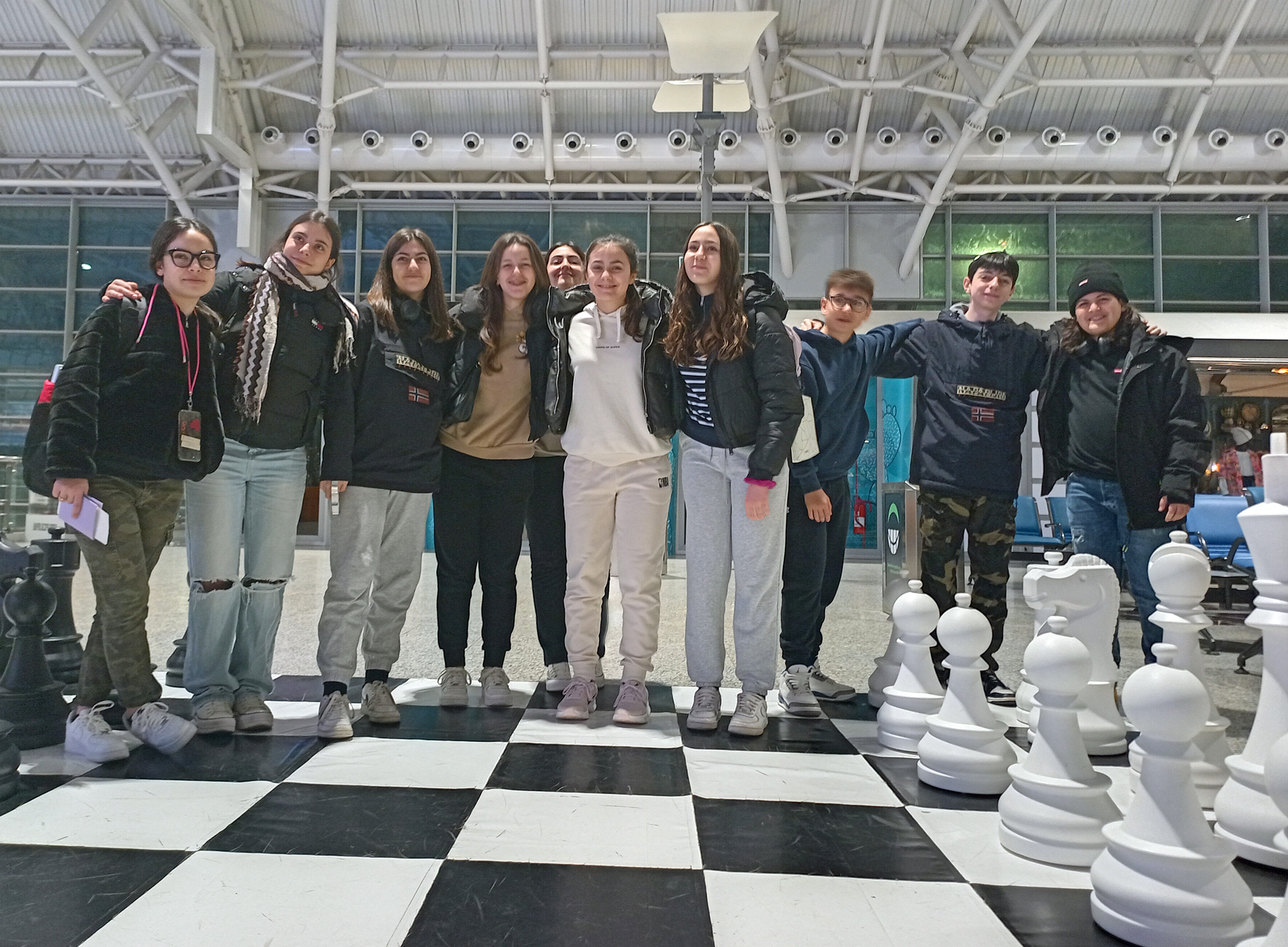 I nove ragazzi della Sardegna in partenza dall’aeroporto di Cagliari (da sinistra: Giada, Alice, Cinzia, Chiara, Maria, Elena, Maria Chiara, Riccardo, Ivan e Francesco). Crediti: Paolo Soletta/Inaf Cagliari